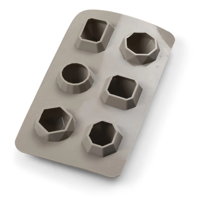 Isterningbakken laver 6 forskellige former isklumper i stor størrelse så du nemt kan tilføje urter, frugt eller lign. Lav fx en stor isterning med hakket mynte og læg den i en kande med vand eller lækker velkomstdrink.