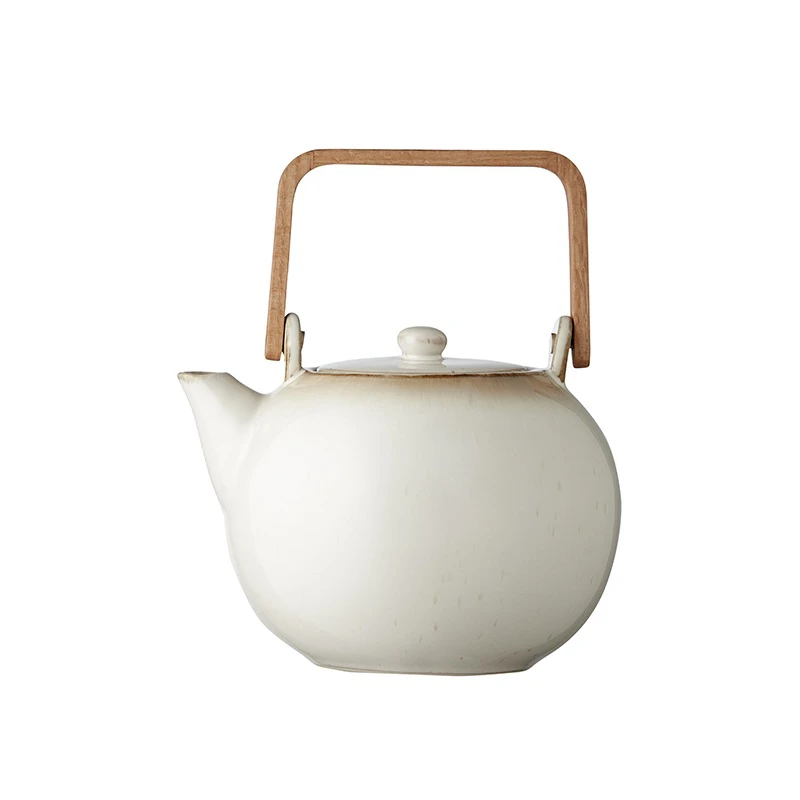 Bitz tekanden rummer 1,2 liter og er fremstillet i robust stentøj med den kendte flotte reaktive glasur. Håndtaget er i egetræ med messingnitter.
