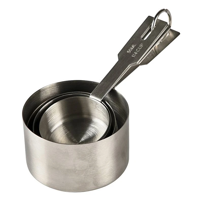 Sæt med 4 målebægre i rustfrit stål. Nu kan du nemt og hurtigt måle sukker, mel, kerner, mælk og vand mm.