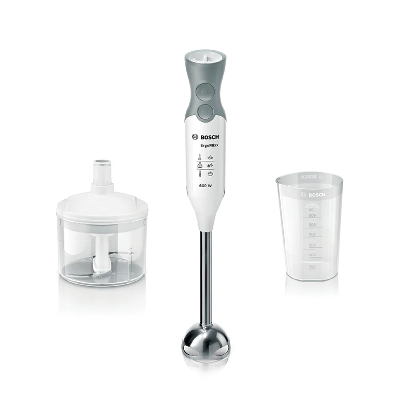 Inkl. tilbehør. Bæger 0,8 liter minihakker. der er velegnet til nødder, mandler, chokolade m.m. Stavblenderen har 12 hastigheder samt turbo. 60 dages tilfredshedsgaranti. 600 watt.