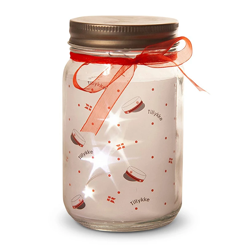 Det Gamle Apotek Glas Med LED Lys Og Rød Studenterhue