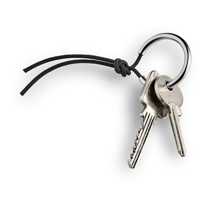Nøglering i raffineret, tidløst og smart tænkt design. Ved blot at løsne knuden er det nemt at sætte nye nøgler i og tage de gamle ud. Nøgleringen passer til langt de fleste nøgler og yderligere tre mindre tillægsringe medfølger for øget fleksibilitet.