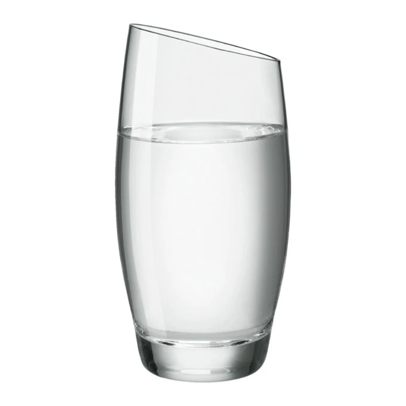 Eva Solo glasset er mundblæst og kendt for sin skrå kant der giver et unikt look og giver et præg til borddækningen.