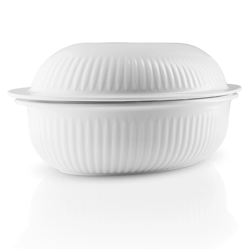 Smart stegeso der både kan bruges til simreretter og bagning men også som flotte serveringsfade da både top og bund har en plan overflade og kan stå på bordet.