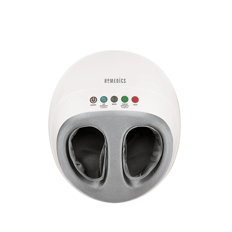 Fodmassagen fra Homedics kan give dine fødder en dyb massage, hvor du kan vælge mellem luftkompression, varme og shiatsu massage – eller en kombination af alle 3. Alle 3 typer kommer i 3 forskellige hastigheder for optimal massage. Du får massage fra hæl til tå: dybdemassagen bearbejder nemlig både ankler, tæer og fodpuder. Knapperne på maskinen kan betjenes med fødderne og du kan bruge maskinen helt op til en str. 46 i sko. Fodmassagen har en blød inderforing, der er produceret i lycra (83% nylon, 17% spandex).