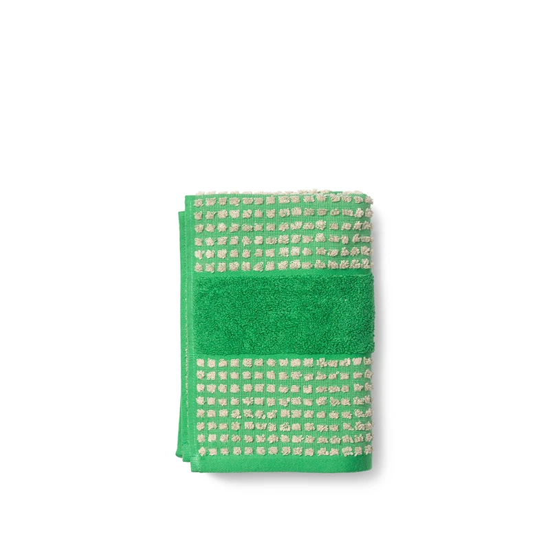 Den lækre og bløde Check-serie til badeværelset i et smukt ternet look består af håndklæder og vaskeklude i skønne farver og forskellige størrelser i et enkelt og afdæmpet design. Som med alle andre kreationer fra JUNA er produkterne i Check naturligvis produceret ansvarligt, og det 100% økologiske vævede bomuld sikrer ikke bare en utrolig blød kvalitet, men også høj slidstyrke. Nu lancerer JUNA de stilfulde håndklæder og vaskeklude i to nye farvekombinationer: blå/sand og grøn/sand. Alle badeværelsestekstilerne er fremstillet og produceret i 100% økologisk bomuld, der både er OEKO-TEX®-mærket og GOTS-certificeret.