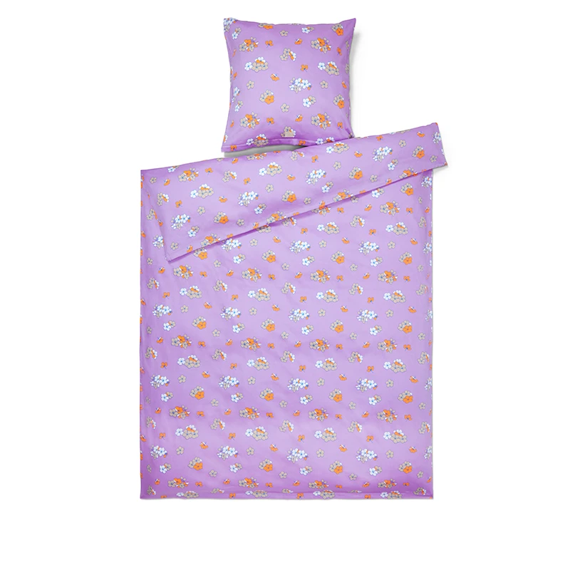 Det farverige sengesæt fra Junas Grand Pleasantly serie har her fået et penselstrøg af dyb lilla med søde blomsterdetaljer. Den dybe lilla minder næsten om forsommerens syrener, der med sin ankomst forsikrer os om, at sommeren er på trapperne. Det fine Juna sengetøj er produceret i 100% økologisk bomuldssatin, der foruden OEKO-TEX mærket også er GOTS-certificeret. I dette skønne sengesæt 140×200 cm får du udover et dynebetræk også et hovedpudebetræk i str. 60×63 cm – begge dele er født med lynlåslukning. Hvis du er så heldig at have flere Juna sengesæt, kan du med fordel mixe og matche de forskellige sæt, så du på den måde skaber din helt egen unikke stil. Juna anbefaler, at sengetøjet vaskes på 40 grader for at skåne miljøet og for at sengetøjet bevarer sin blødhed og kvalitet i mange år frem. Kan hvis nødvendigt godt tåle en tur i vaskemaskinen på 60 grader.
