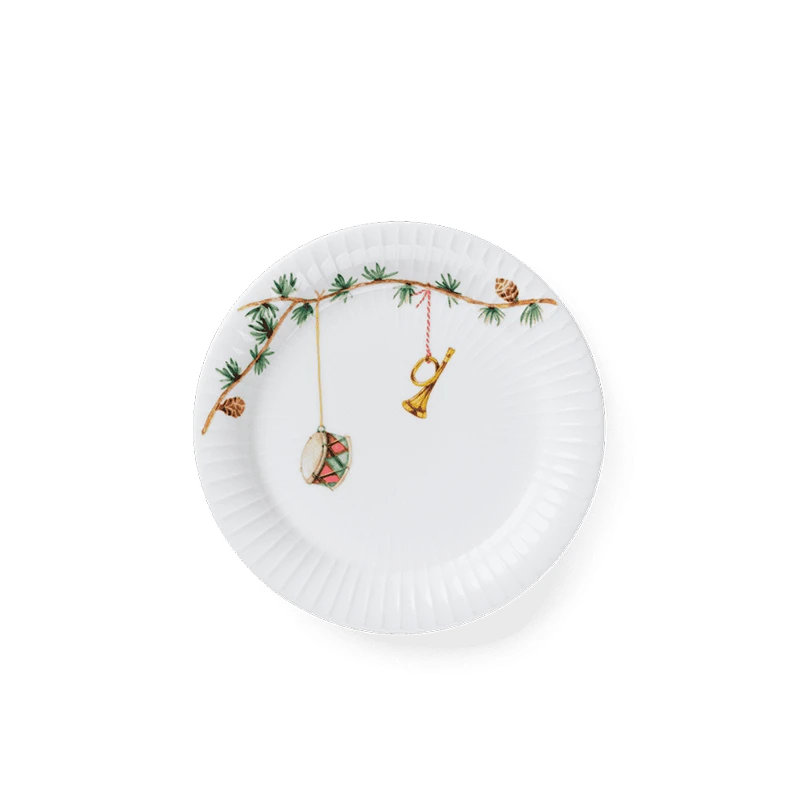 Kähler Hammershøi Jul tallerken 19 cm Det klassiske hvide Hammershøi stel har på elegant vis forvandlet sig til et julestel. Med en moderne tilgang er der referencer til den traditionelle jul og de kendetegn og farver vi forbinder med højtiden såsom julehjerter, trompeten og julekugler. Hammershøi julestellet har stadig de ikoniske Hammershøi riller og den hvide grundfarve passer sammen med det traditionelle hvide stel. Skab en behagelig og moderne julestemning når der serveres og anrettes med Hammershøi julestellet