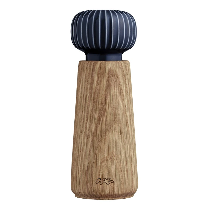 Denne smukke salt- eller peberkværn er designet af Hans-Christian Bauer. Den er produceret i ubehandlet egetræ med sort top i porcelæn, og den er både æstetisk og enormt funktionel. Den har de klassiske rifler på toppen som kendetegner Hammershøi-kollektionen, så den går let sammen med resten af serien. Kähler kværnene har desuden den fantastiske og unikke CrushGrind funktion. Det betyder, at kværnene indeholder en dansk, patenteret teknologi i topkvalitet, der er med til at frembringe den bedste gastronomiske oplevelse i køkkenet. Takket være kværnene kan du nemlig ikke blot kværne salt og peber – du kan også bruge dem til at kværne tørrede urter og krydderier, så der frigives skønne essentielle olier og aromaer.