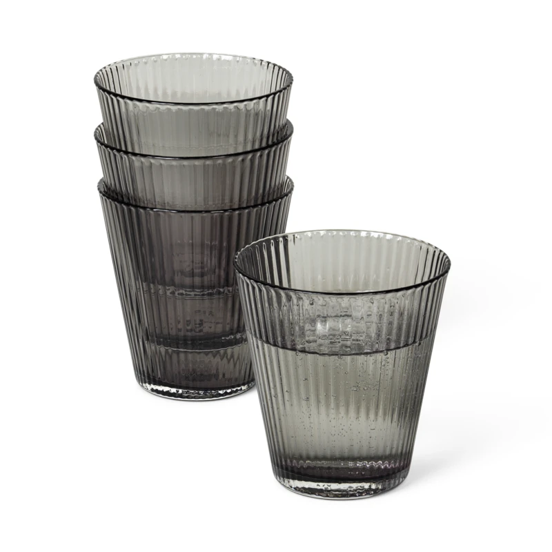 Flotte mundblæste glas med riller der giver et smukt optisk spil når lyset brydes i glasset. Lækkert glas der gør sig godt til både hverdag og fest. Stabelbare for nem opbevaring Opvaskemaskine op til 55 °C.
