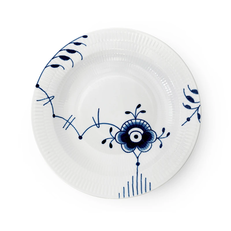 En dyb tallerken er uundværlig til lækre pasta- og risretter eller til en cremet og smagfuld suppe. Er du vild med Royal Copenhagen Blå Mega Riflet serien kan du nu købe en dyb tallerken på 27 cm med de smukke håndmalede koboltblå dekorationer. Blå Mega Riflet mønstret blev skabt af Karen Kjælgård-Larsen tilbage i 2000, og har vundet plads i mange danske hjem.