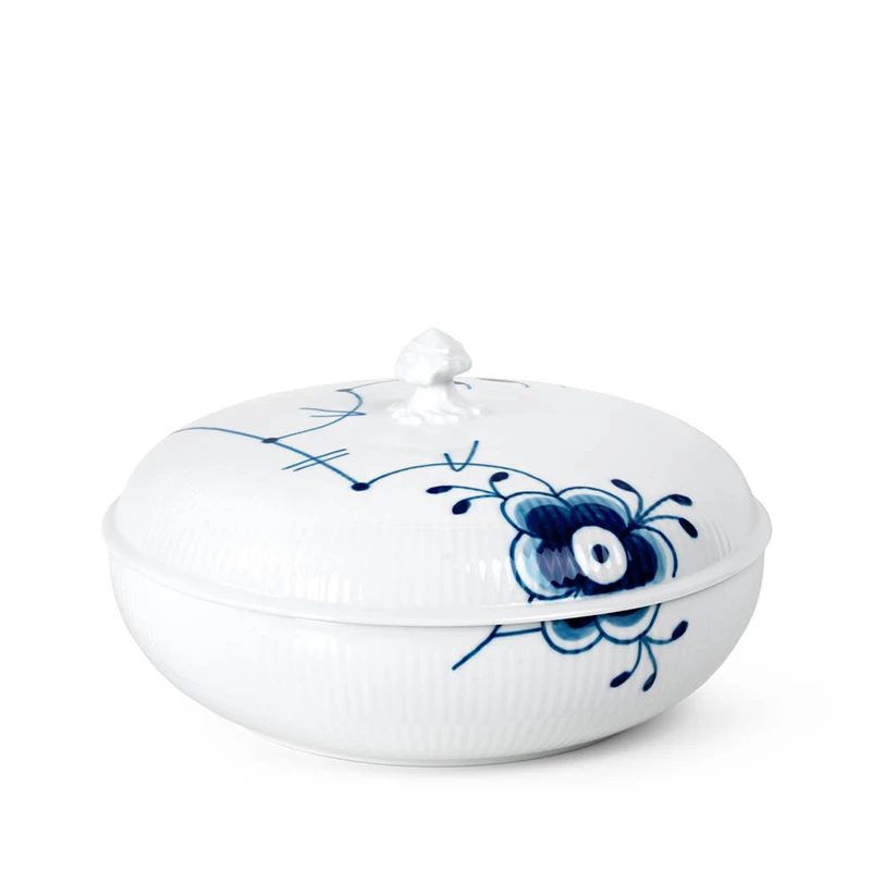Denne smukke, nye tilføjelse til Blå Mega Riflet serien fra Royal Copenhagen er perfekt til både varme og kolde retter. Det gælder alt fra kartofler til kød eller en lækker salat. Låget hjælper med at holde lidt længere på varmen eller sørge for at der ikke er alverdens insekter, der sætter sig på indholdet, hvis der spises ude en sommerdag. Du kan også sagtens vælge at bruge skålen som et større dekorativt element på reolen i hjemmet.