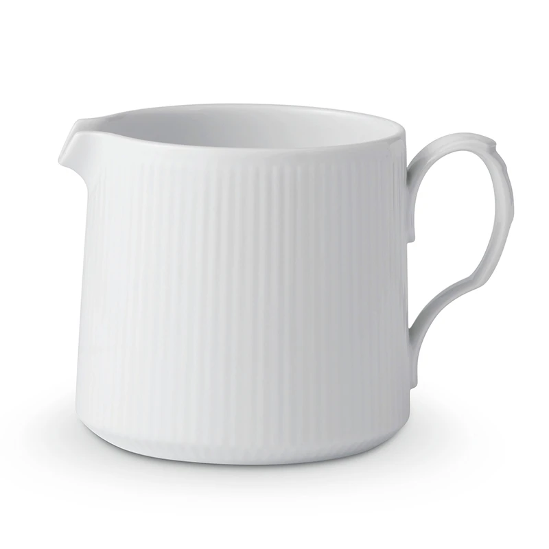 Royal Copenhagen Hvid Riflet kande der passer perfekt til servering af fx saucer, varm mælk til kaffen.