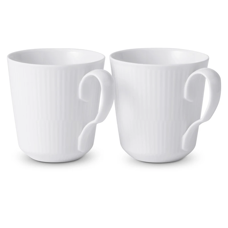 Royal Copenhagen HvidRiflet krus 2-pak 28 cl. De moderne krus er i en mindre størrelse og har et skønt udseende. Perfekte til en kop kaffe, the eller kakao. Tåler mikroovn og opvaskemaskine