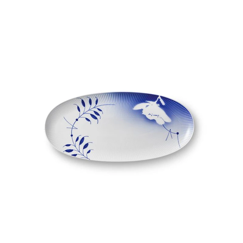 Dette smukke ovale fad er oplagt til større serveringer, men kan også sagtens pryde for sig selv med en fin dekoration eller fyrfadslys. Fadet er Limited Edition ligesom alle andre steldele fra Mega Rose-kollektionen. Mega Rose er en hyldest til Blå Mega Riflet i anledning af stellets 20-års jubilæum i 2020. Denne særkollektion fortolker de velkendte, håndmalede dekorationer, ved at tilføje sprøjtemalede silhuetter af en smuk rose.