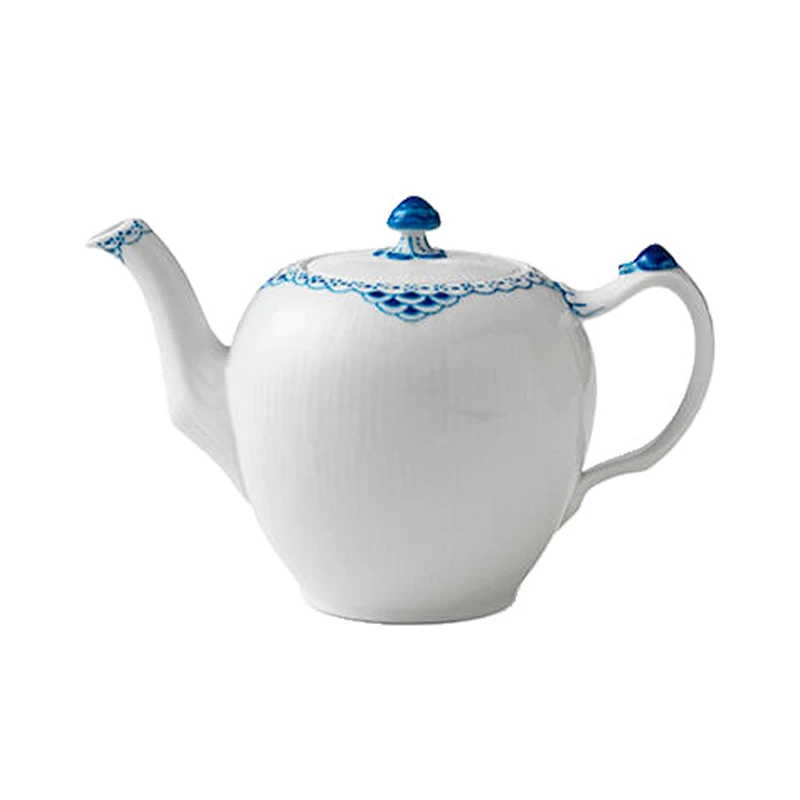 Denne yndige og håndmalede tekande er perfekt til et mindre teselskab. Kanden kan også sagtens bruges som almindelig kande eller som en vase, hvis bordet skal pryde lidt ekstra eller hvis man ønsker at bryde med det traditionelle.. Med tætte bånd til det klassiske musselmalede stel, blev Prinsesse-stellet skabt tilbage i 1978 som et testel. Men det blev hurtigt tydeligt, at dette elegante og feminine stel skulle være mere end blot et testel. Derfor er Prinsesse-stellet et fuldt middagsstel med alt hvad hjertet begærer.