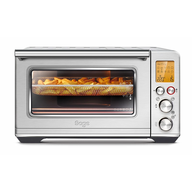 Den smarte miniovn fra Sage er udstyret med 10 smarte madlavningsfunktioner. Du kan blandt andet benytte Air Fryer-funktionen, der indeholder Sage Element iQ-systemet, som kontrollerer varmen og dermed skaber en perfekt sprød oplevelse. De andre funktioner på LCD-displayet hjælper med at tilberede efter behov: Toast (til 6 skiver), Crumpet, Grill, Bake, Roast, Warm, Pizza, Reheat og Slow Cook. Lav lækkert og sprødt kylling eller byd gæsterne på en varm pizza. Velbekomme!