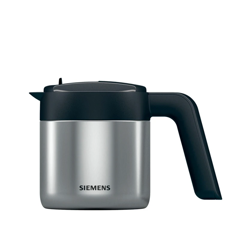 Siemens termokaffekande i rustfrit stål kan bruges til følgende Siemens espressomaskiner: EQ.500-serien, EQ700-serien og EQ.9-serien. Med Siemens kaffekanden kan du brygge kaffe til flere på én gang, og blot stille termokanden på bordet, så dine gæster selv kan hælde op. Der kan være op til 1 liter kaffe i kanden, og den har termofunktion, og holder derfor kaffen varm i flere timer. Nem at rengøre da dækslet kan tages helt af.