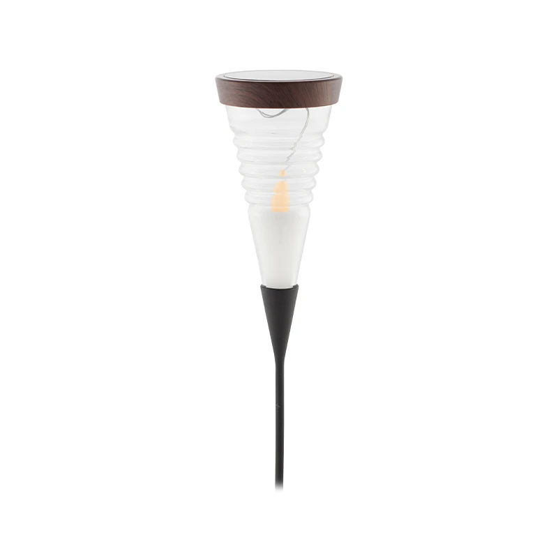 Smart fakkel med LED lys, der oplades via solcellesystem. Oplad faklen ved at stille den i solen i 2 timer, herefter kan den lyse i op timer 8 timer når solen går ned.