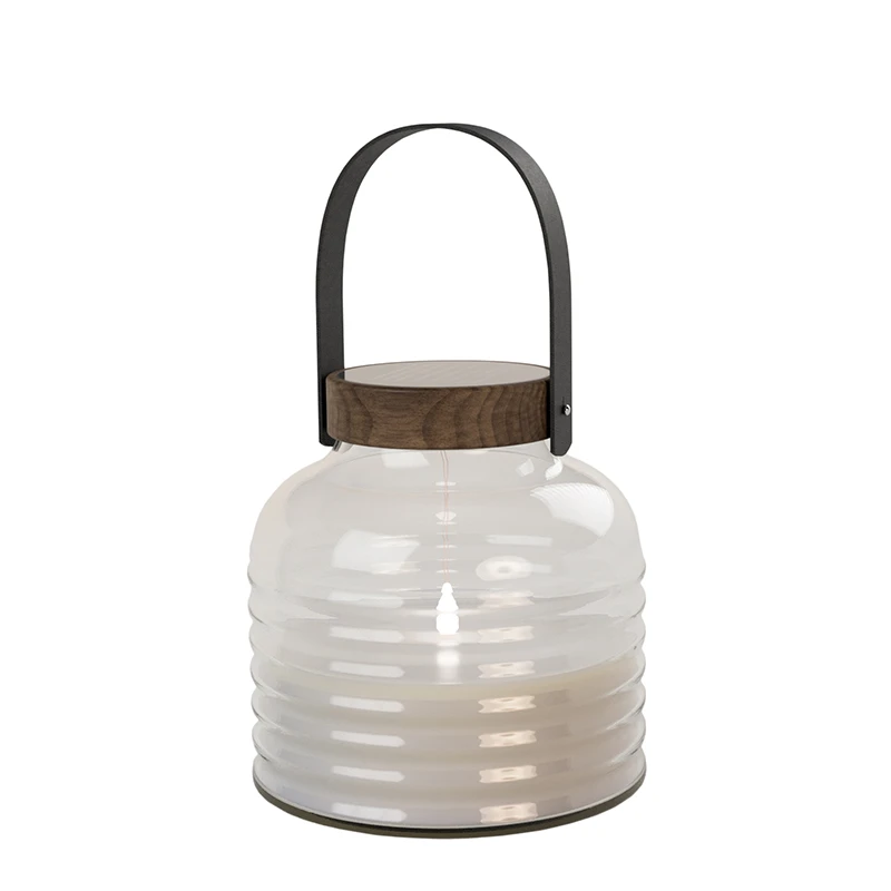 Smart krukke med LED lys, der oplades via solcellesystem. Oplad krukken ved at stille den i solen i 2 timer, herefter kan den lyse i op timer 8 timer når solen går ned.