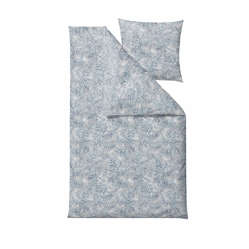 Ekstra længde. Södahl sengesæt 140×220 cm. Blossom china blå. Økotex produceret. 100% bomuldssatin. Med lynlås i både dyne og pudebetræk