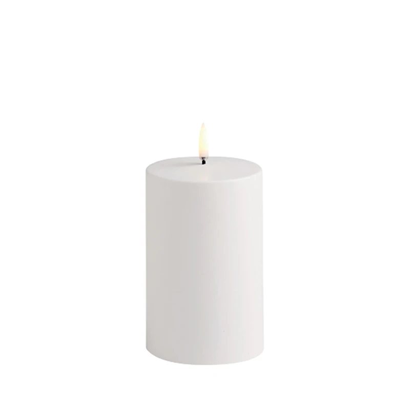 Uyuni Lighting er opkaldt efter verdens største saltslette ved navn Salar de Uyuni, der befinder sig i Bolivia. Stedet er kendt for sine stjerneklare nætter, hvor de smukke funklende stjerner danser tværs over nattehimlen. Dette stilrene bloklys har en unik 3D flamme, der imiterer en ægte blafrende flamme, som vi kender fra helt almindelige stearinlys. Levende lys er hyggelige, men de soder også en hel del og er ikke sunde for indeklimaet. Med LED-teknologi har Uyuni Lighting skabt en fantastisk serie af stearinlys, der skaber en hyggelig atmosfære uden at forurene dit indeklima. Du har mulighed for at tilkøbe en fjernbetjening, så du ikke behøver at rejse dig fra sofaen, hvis du gerne vil tænde eller slukke lyset, anvende en af de tre lysstyrker eller indstille timeren. Timeren kan indstilles så lyset slukker efter 4, 6, 8 eller 10 timer. Bloklyset anvender 2x C batterier som ikke medfølger, men kan tilkøbes her hos Kop & Kande. Lyset er UV beskyttet men bør ikke være i brug, hvis der er -10 grader eller over 40 grader udenfor.